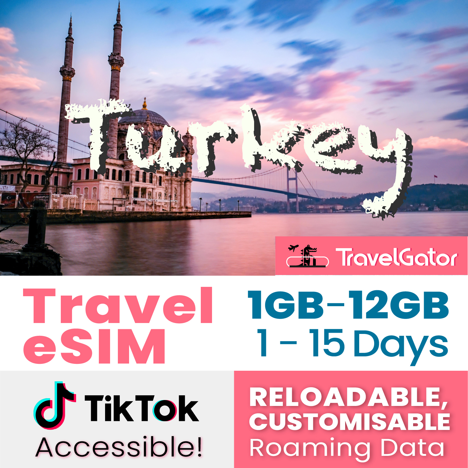 Turkey eSIM Roaming Data 1- 12GB, 1- 15 days | true no speed reduction | no daily limit