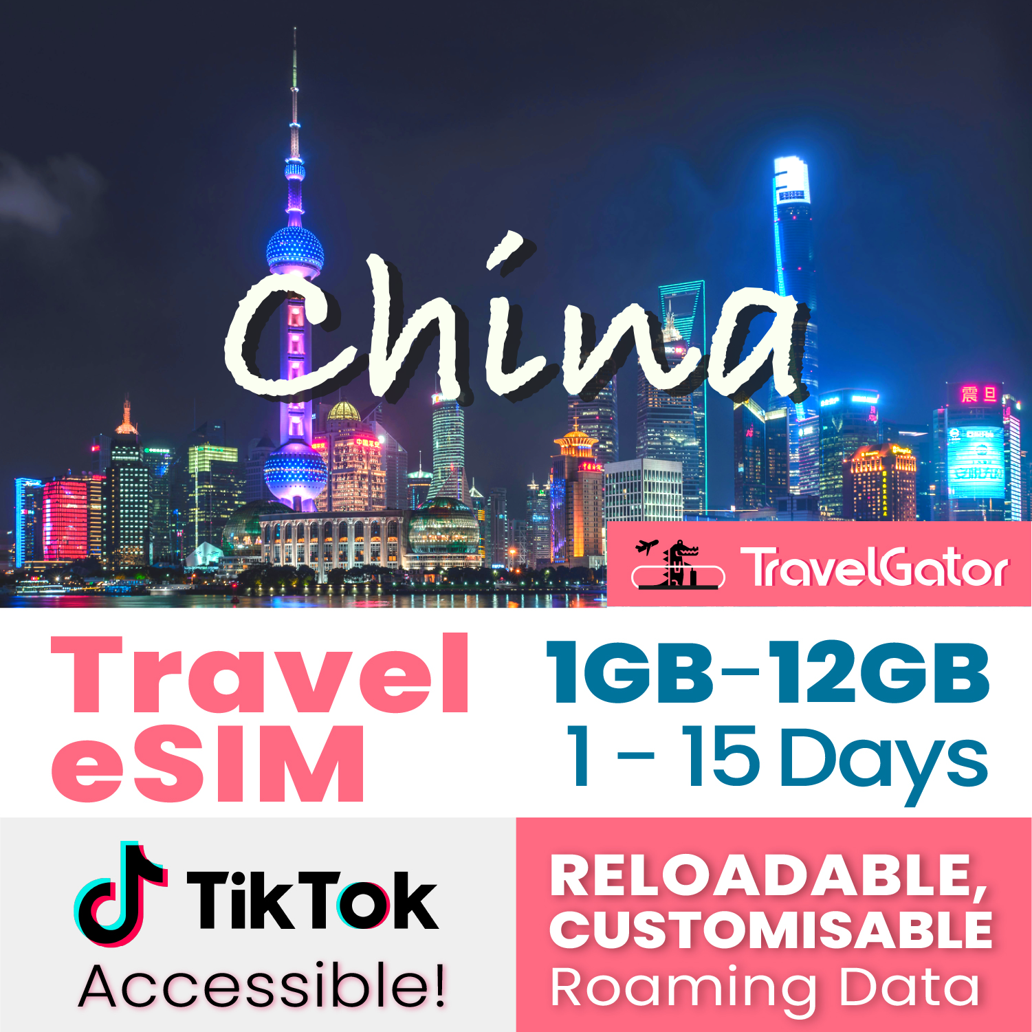 China eSIM Roaming Data 1- 12GB, 1- 15 days | true no speed reduction | no daily limit